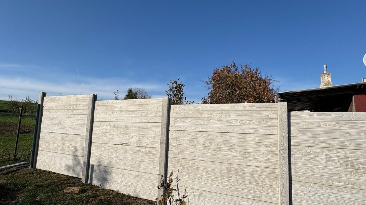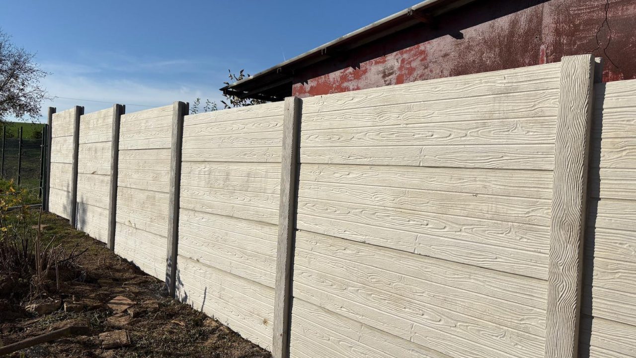 Betónový plot s imitáciou dreva je obľúbeným vzrom. Vďaka svojej špecifickej textúre a farebnej schéme oslovuje široké spektrum ľudí.